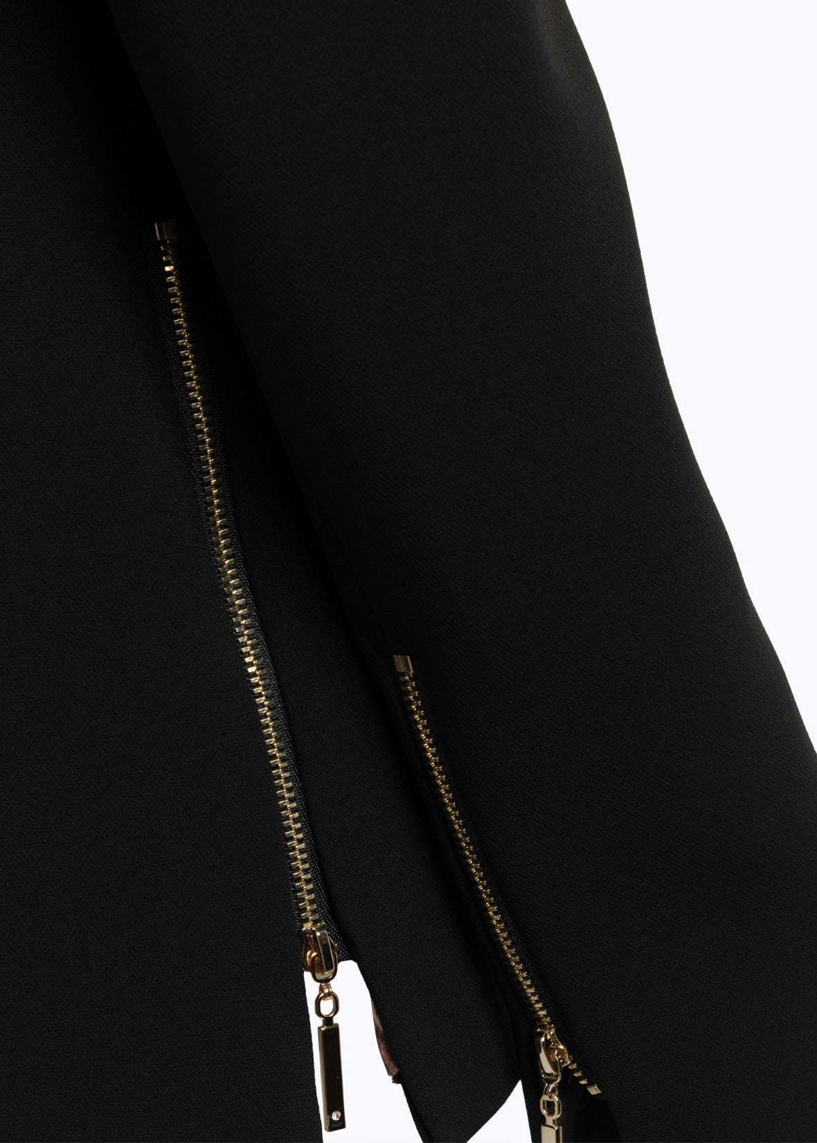 Blazer de viscose elástica e com toque quente. Caimento regular, mangas compridas com zíper de metal nos punhos, fecho de botões forrados com o primeiro logotipo, bolsos inclinados e forro com estampa.