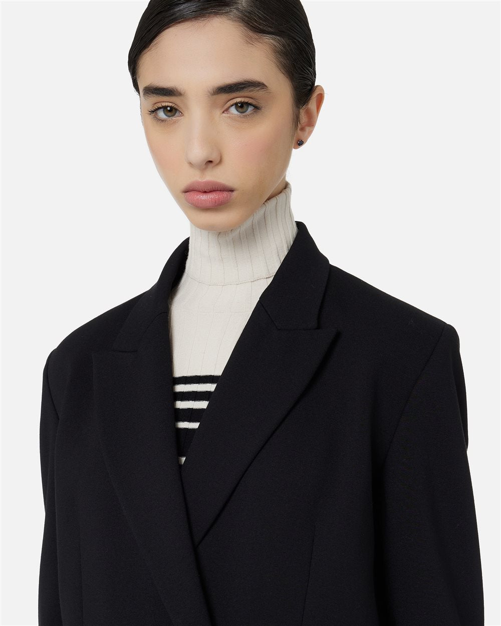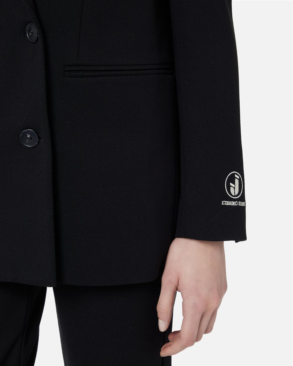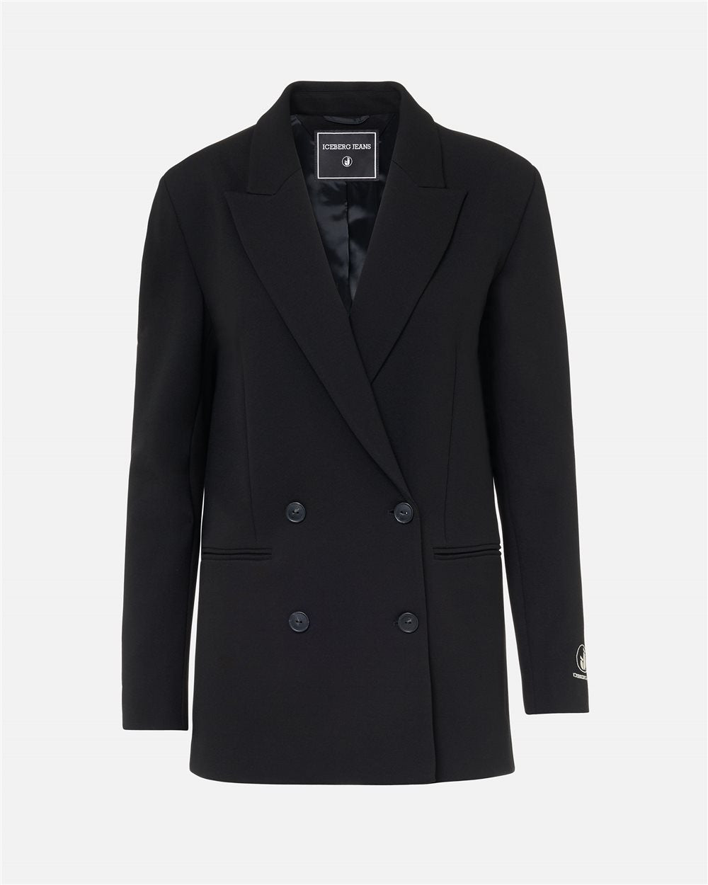 Elegância e modernidade se encontram neste casaco trespassado confeccionado em ponto Milano elástico preto, projetado para um ajuste sob medida e confortável. Os botões com o logotipo de chifre falso adornam a parte central da frente e os punhos, enquanto os bolsos embutidos nas laterais mantêm um design clean e funcional. O logotipo IJ bordado no punho esquerdo adiciona um toque refinado da identidade Iceberg.