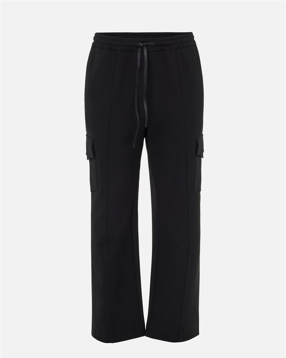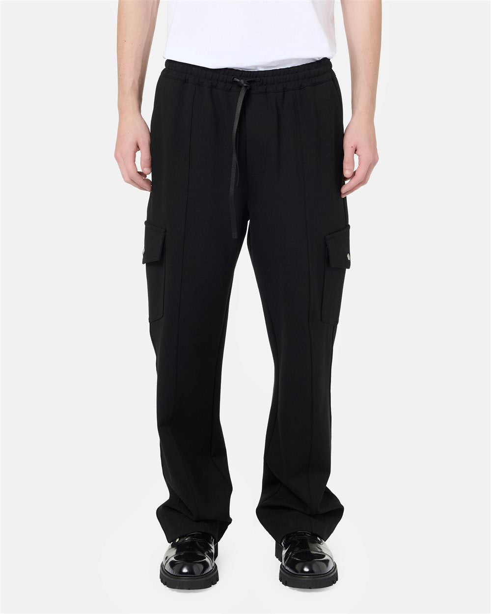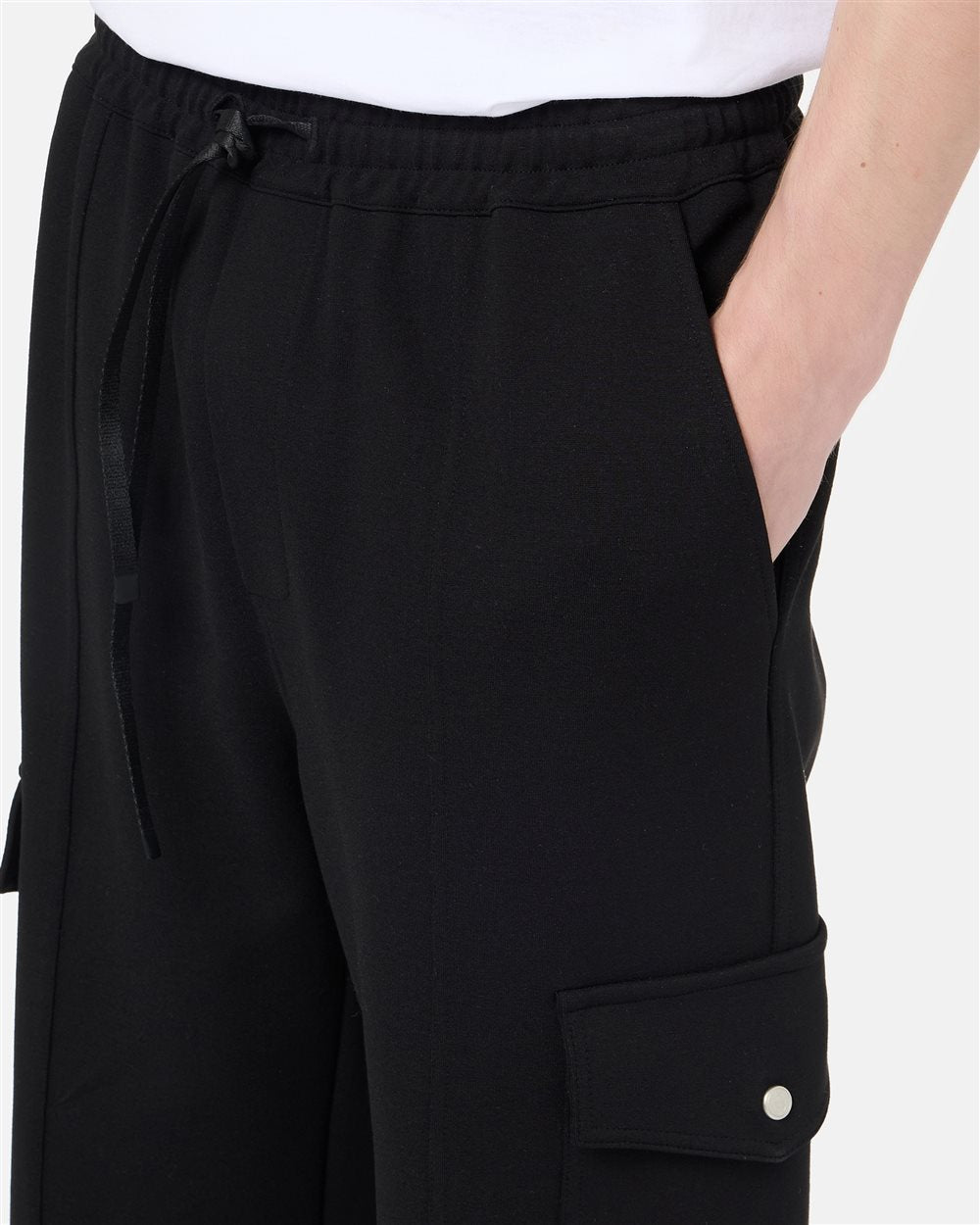 Calças Couli, com corte cargo, destacam-se pela sua elegante mistura preta, que confere à peça uma textura sofisticada e materializada. A cintura é ajustável com cordão de tecido coordenado, enquanto os grandes bolsos de chapa com abas nos joelhos realçam a inspiração utilitária. O logotipo Iceberg IJ bordado, posicionado sob o bolso traseiro direito embutido, confere uma elegância discreta e reconhecível, tornando estas calças um item indispensável funcional e contemporâneo.