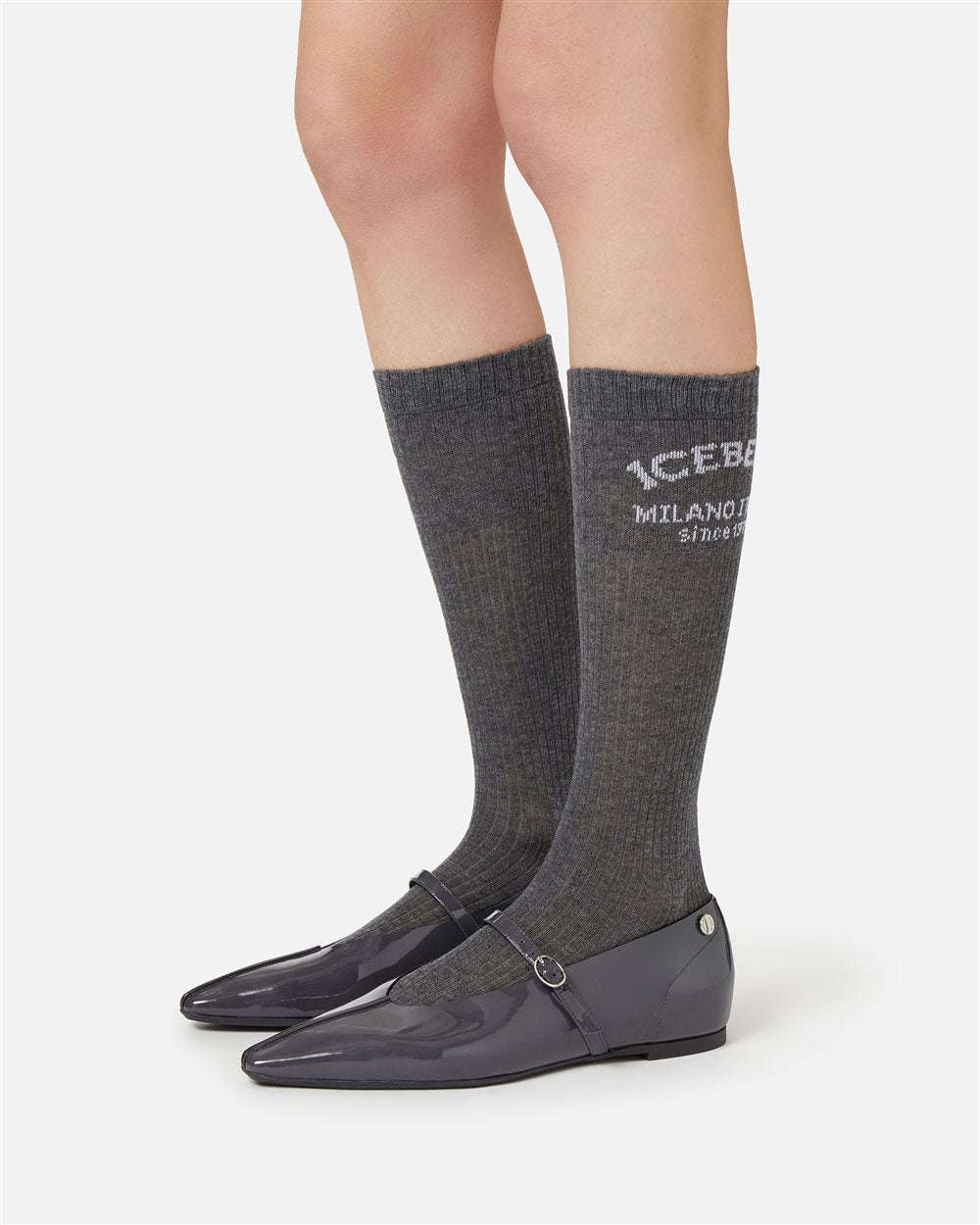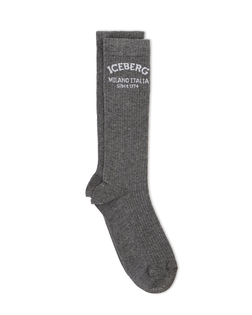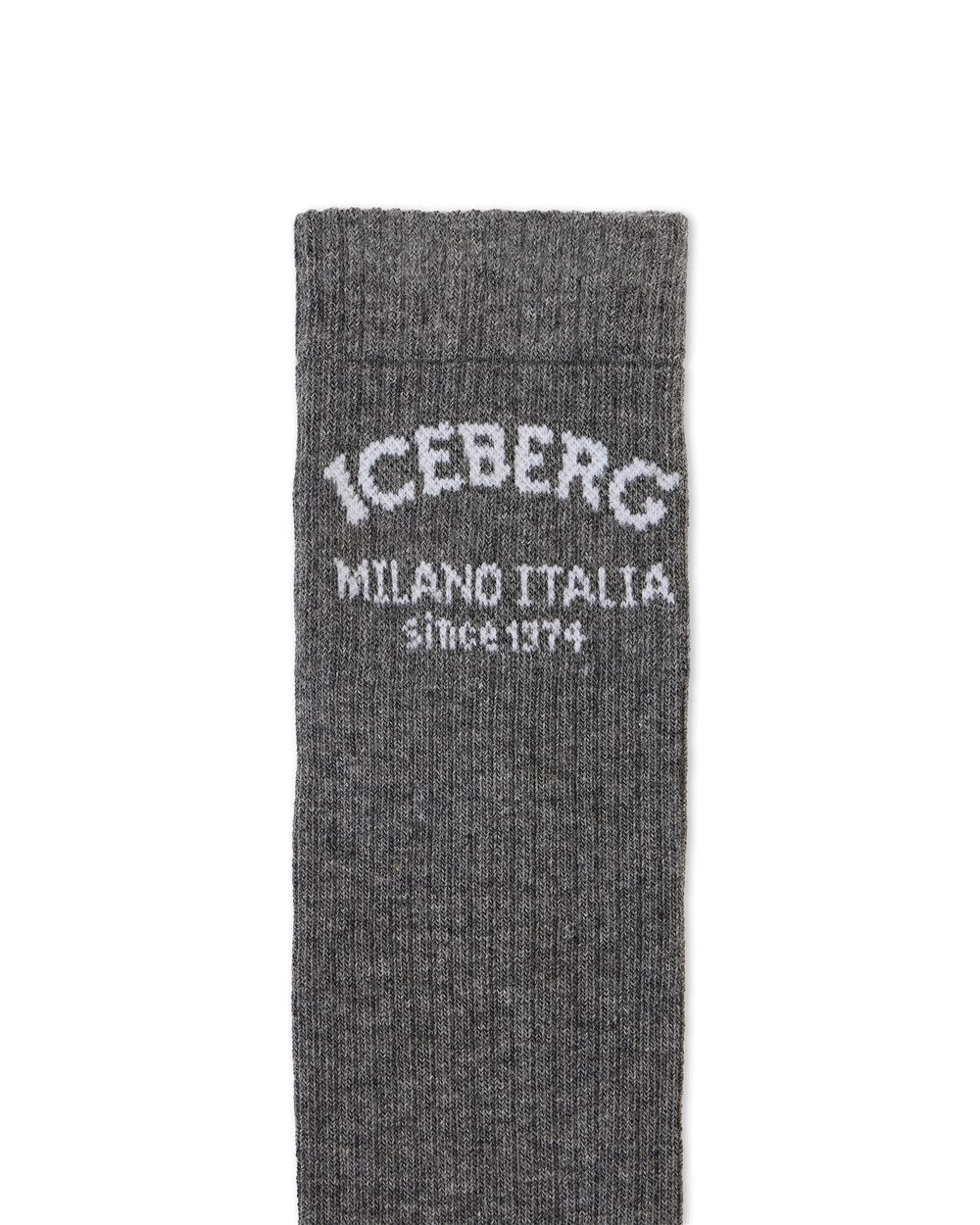 O detalhe que faz a diferença: meias de algodão que se destacam pelo logo "Iceberg Milano" em jacquard. Faceis de conjugar e perfeitas para completar um look discreto.