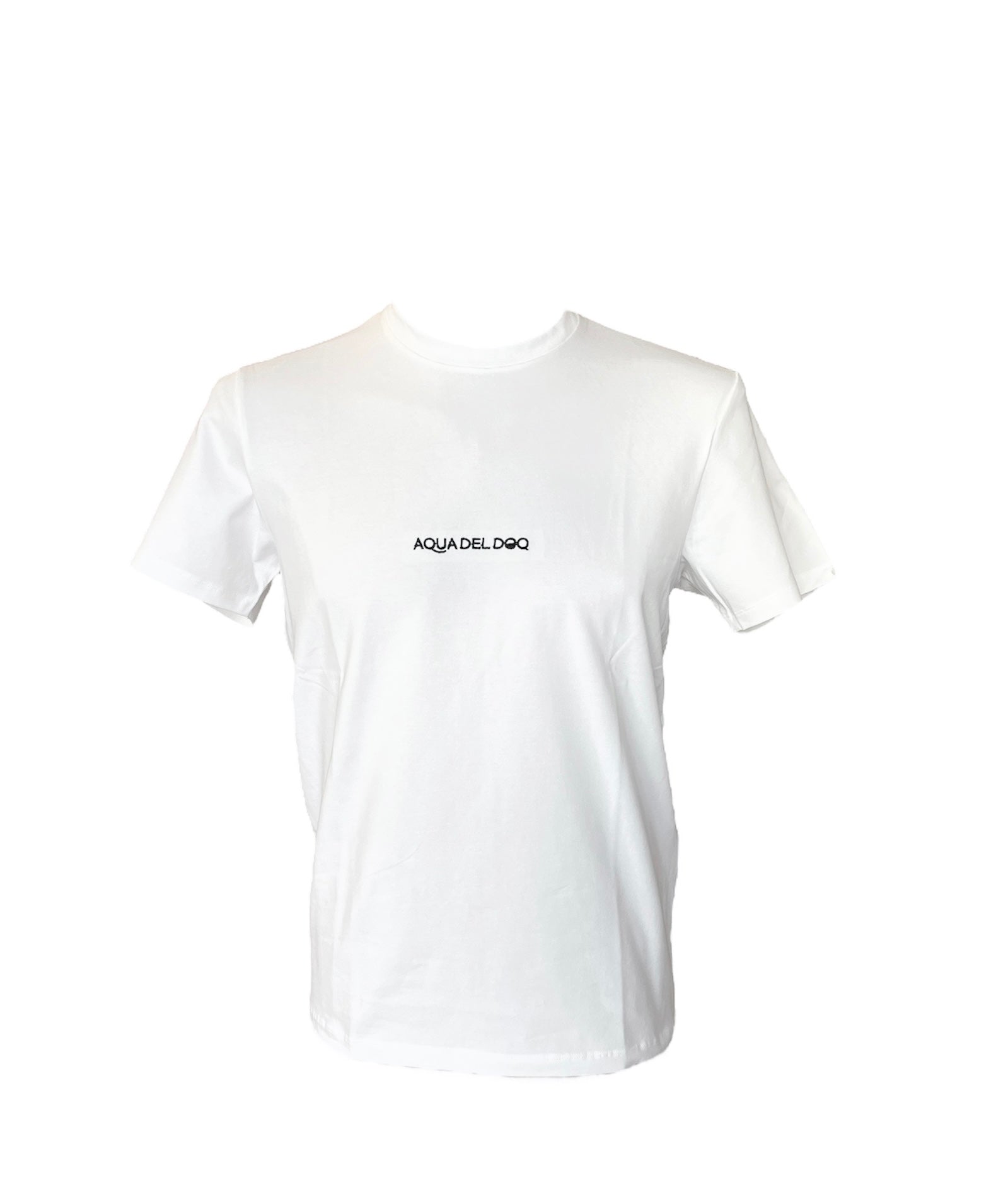 T-shirt em algodão, cor sólida básica, logótipo, gola redonda, manga curta.