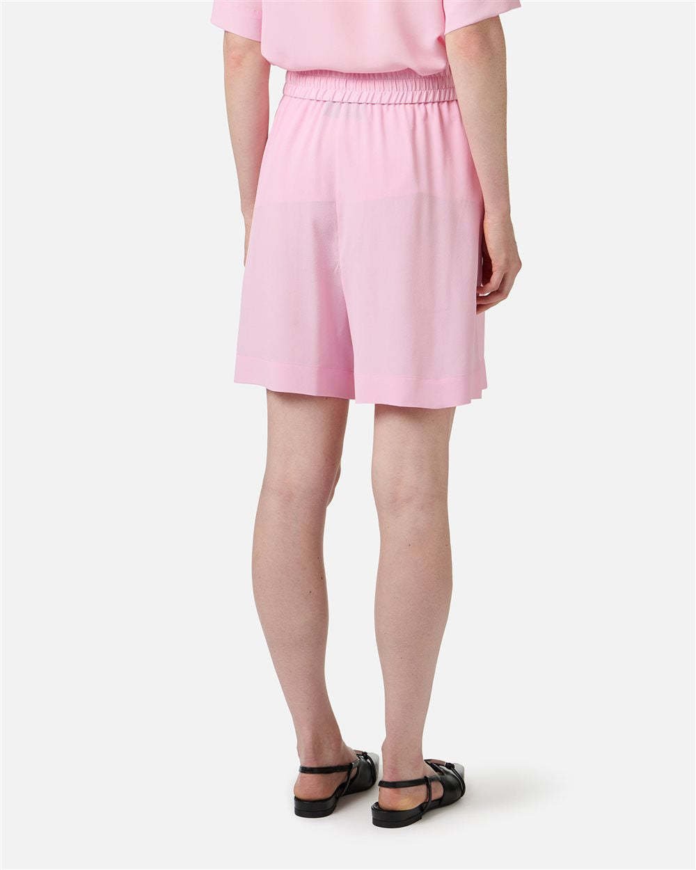 Bermuda em crepe de chine fino e mistura de seda num delicado tom rosa, concebida para oferecer conforto e sofisticação numa só peça. O corte jogging garante liberdade de movimentos, enquanto os detalhes contrastantes nas laterais conferem um toque desportivo elegante. A cintura elástica com cordão ajustável, com ponteiras com o logótipo Iceberg, permite um ajuste personalizado e completa o design com um toque distinto e contemporâneo.