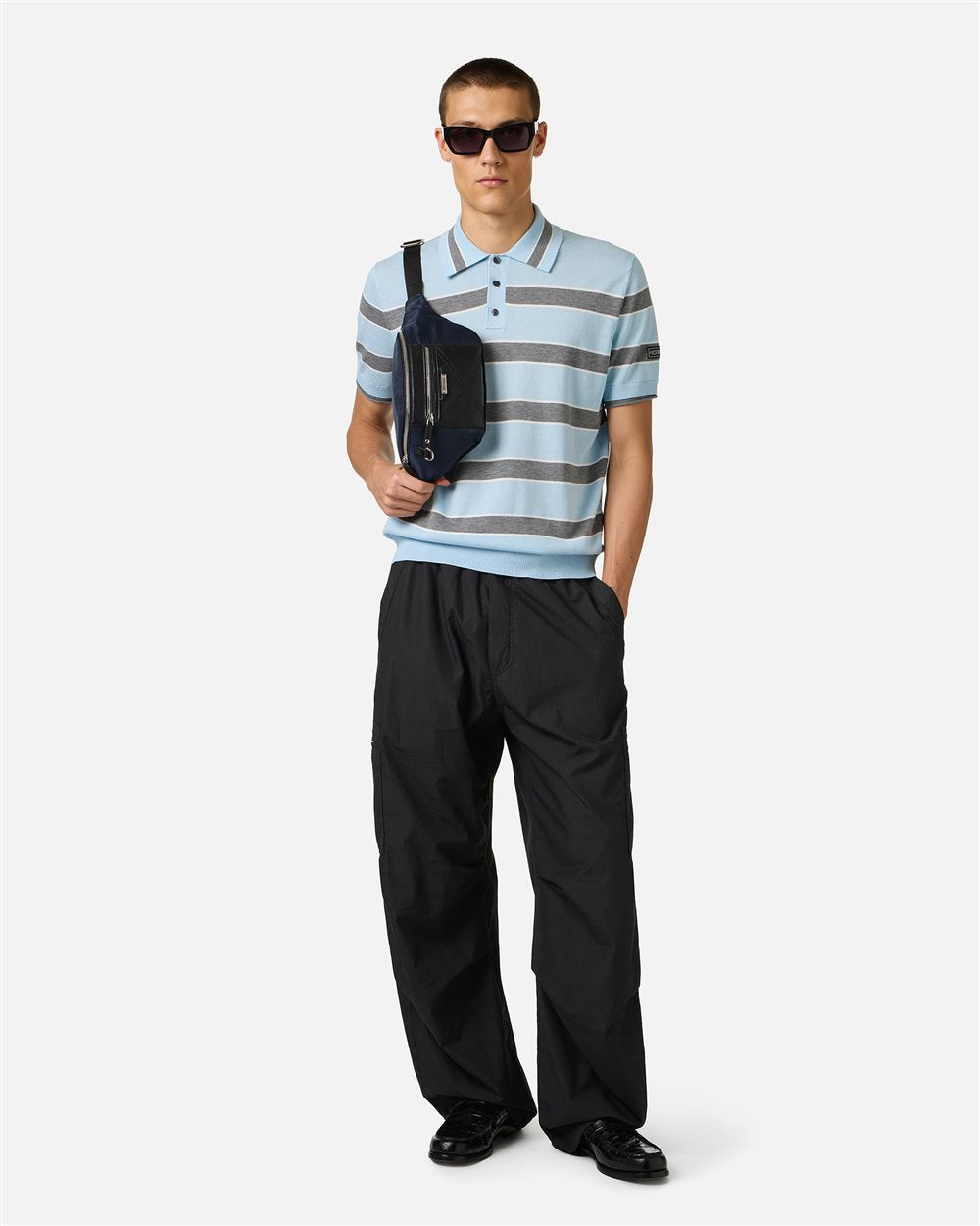 Suéter polo de algodão listrado multicolorido com modelagem regular e detalhes de costura aparente. O design alterna listras e seções de cores sólidas com contrastes de cor na gola e nas extremidades das mangas, que introduzem um toque gráfico arrojado. A etiqueta Iceberg aplicada na manga esquerda assina discretamente a peça. Um design essencial e contemporâneo, criado para adicionar personalidade ao seu guarda-roupa do dia a dia.