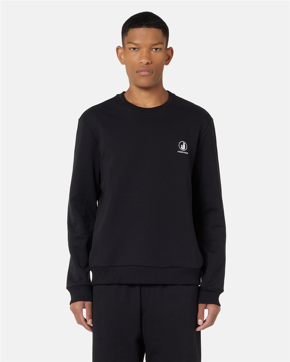 Este suéter de gola redonda com corte regular é feito de fleece diagonal de algodão preto, com uma estampa discreta do logotipo do IJ no centro. Uma peça essencial e confortável, perfeita para quem busca um estilo clean e refinado sem abrir mão de um detalhe marcante.