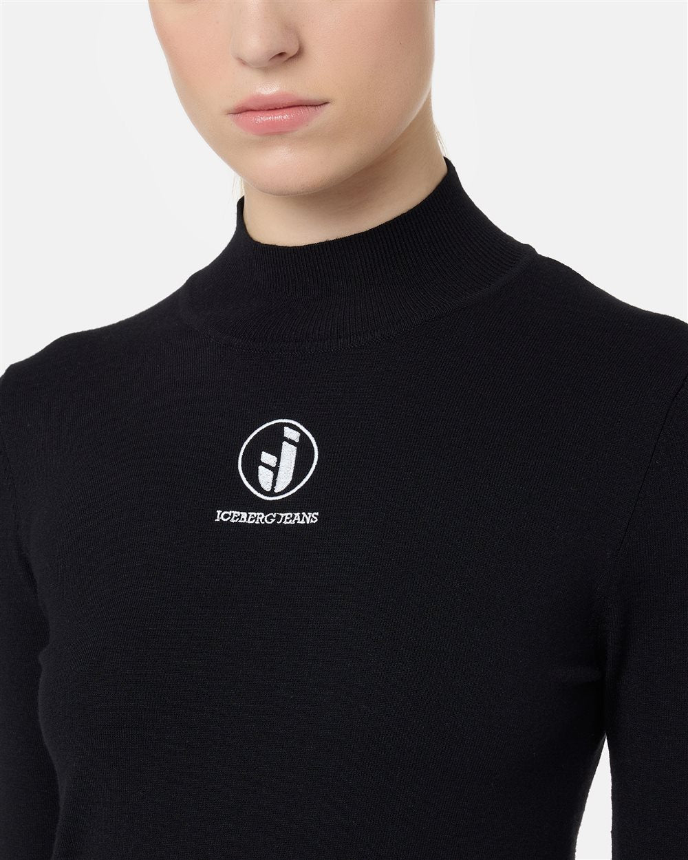 Gola alta slim fit em mistura de viscose com malha lisa de calibre 14, com listras horizontais pretas tom sobre tom. O detalhe bordado do logotipo Iceberg na parte central frontal adiciona um toque gráfico e reconhecível a uma peça feminina com um design essencial, porém vibrante.