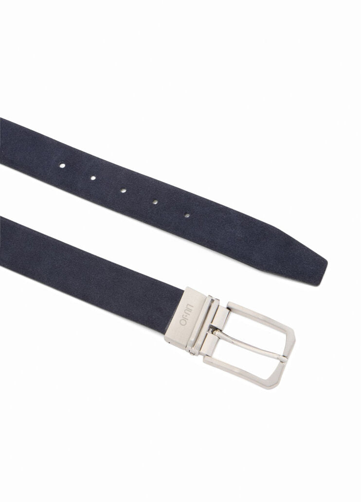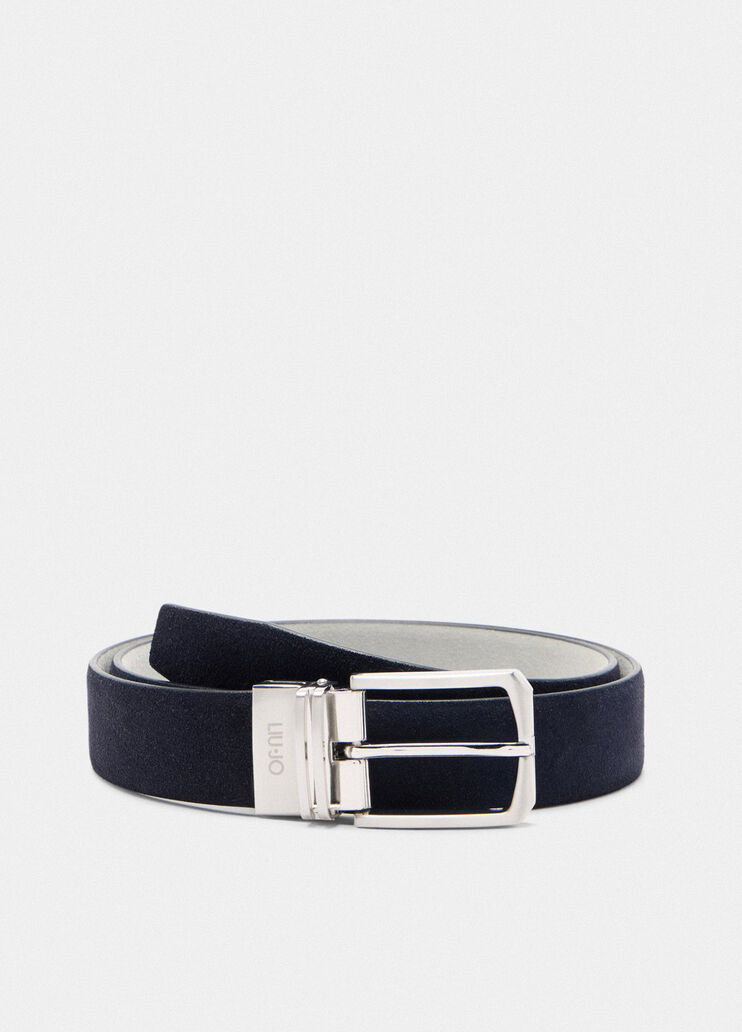 Cinto reversível, feito em couro curtido, detalhe em metal com logotipo, fivela ajustável