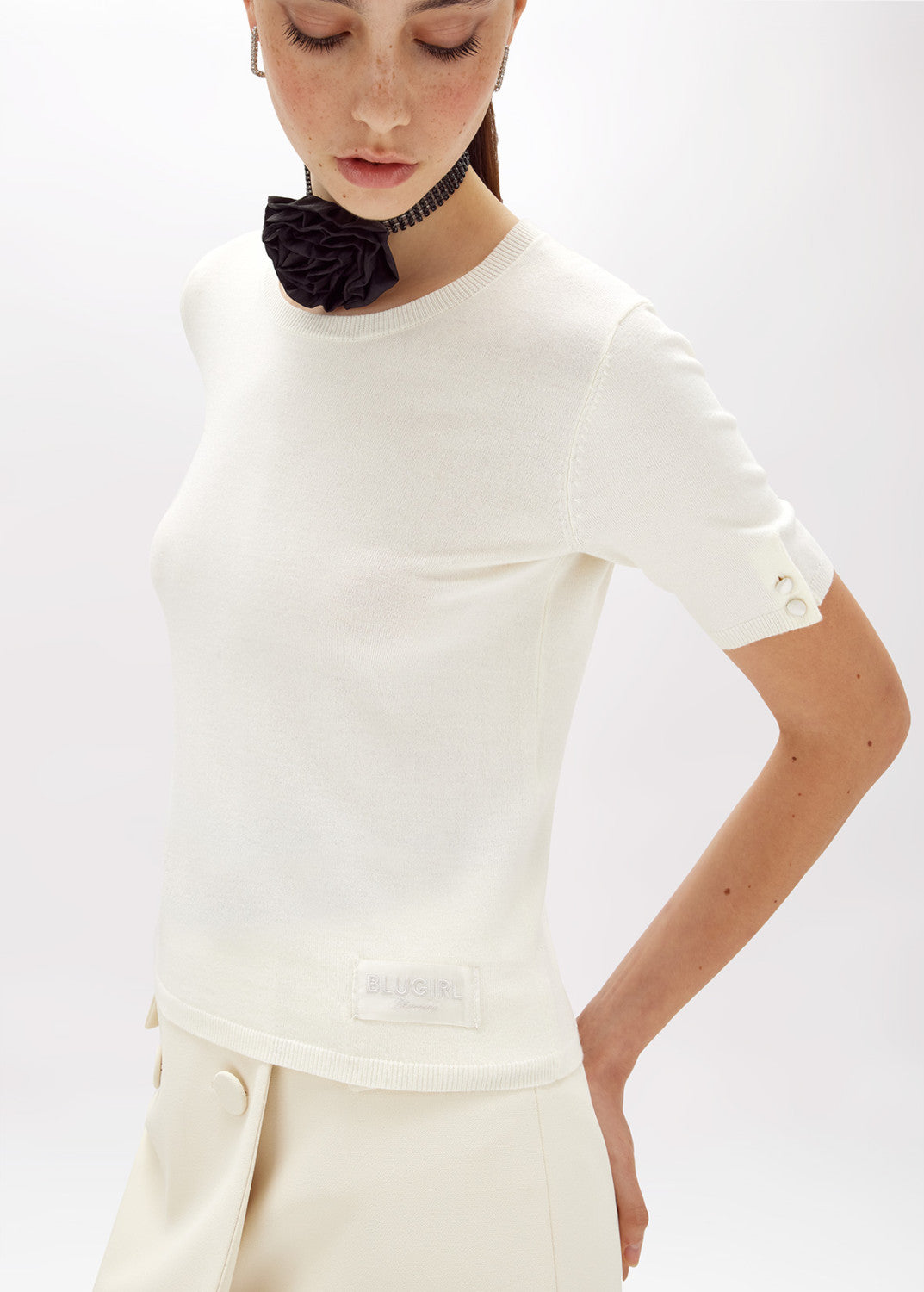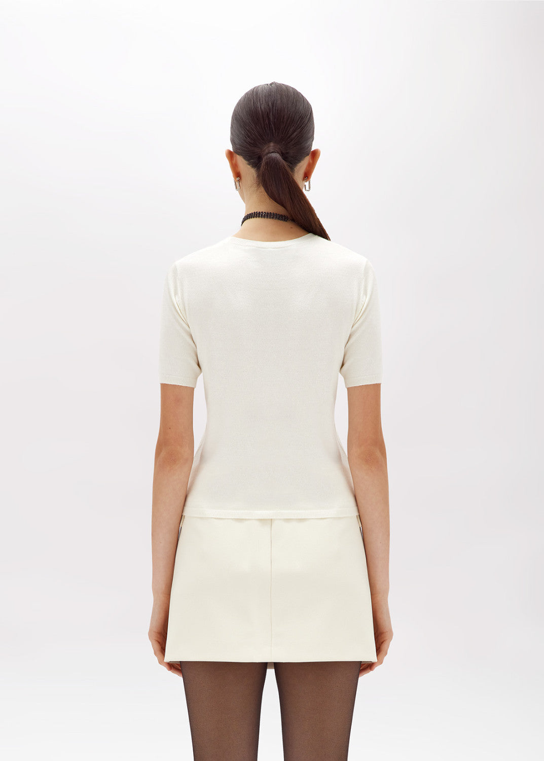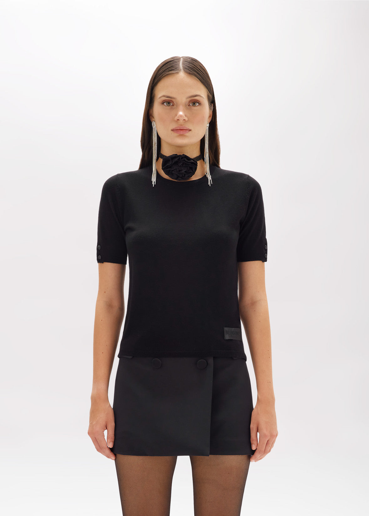 Sozinho ou como sobreposição, este suéter em viscose possui um toque macio com efeito cashmere. Corte regular, gola redonda, mangas curtas e etiqueta de cetim com logo bordado na barra. Essencial e perfeito para diversos looks.