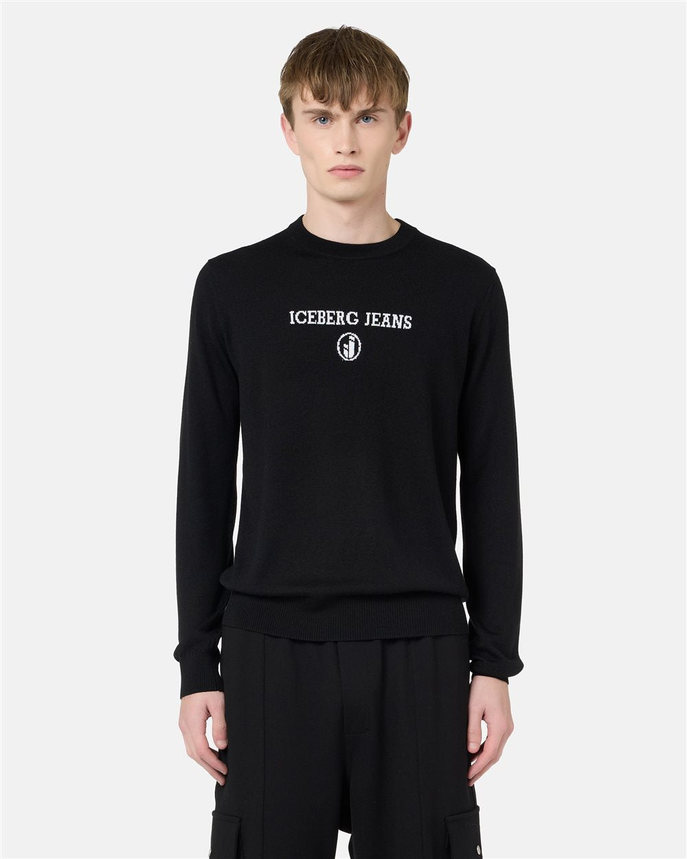 Corte slim elegante para este suéter de mistura de lã, malha lisa, calibre 12. O detalhe marcante é a incrustação central do logotipo Iceberg IJ em tom sobre tom, que confere um toque gráfico discreto e refinado à peça, perfeito para completar qualquer look com estilo.