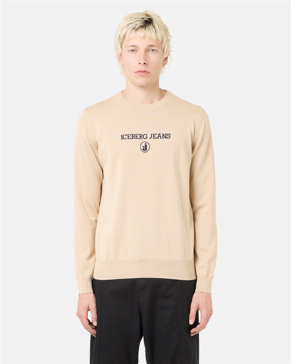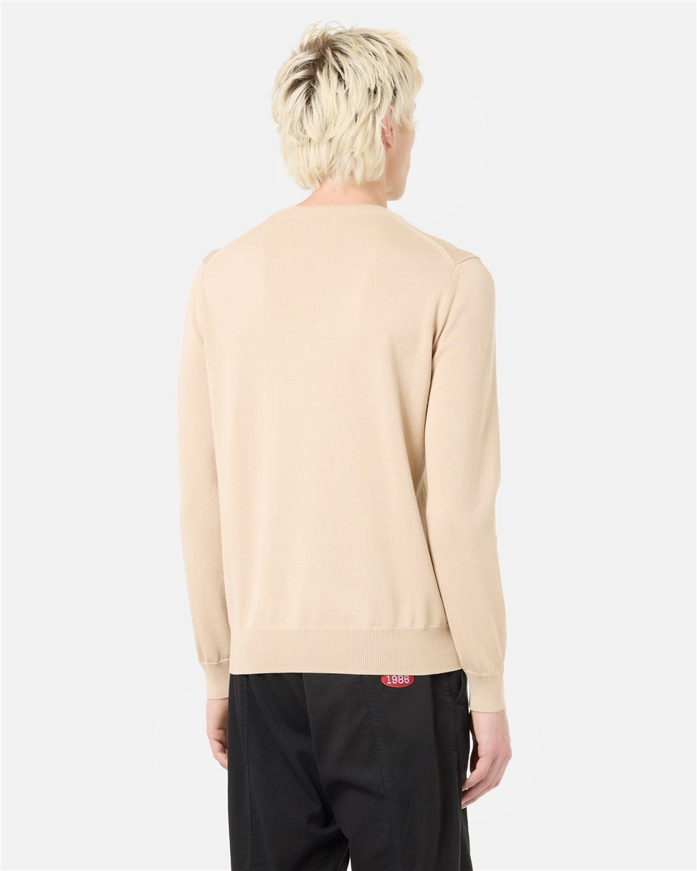 Suéter de gola redonda em puro algodão com trama simples de 12 fios, oferecendo uma textura macia e um visual clean. O logo aplicado na parte frontal central introduz um detalhe identificador, enquanto a gola, os punhos e a barra canelados definem a peça com um acabamento limpo e refinado. O tom bege claro aumenta sua versatilidade, tornando-o ideal tanto para usar sozinho quanto como base para sobreposições mais sofisticadas.