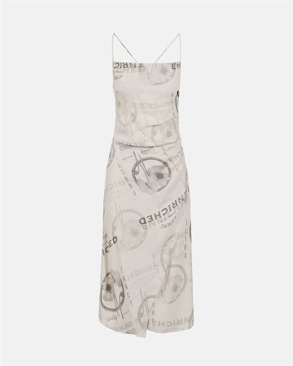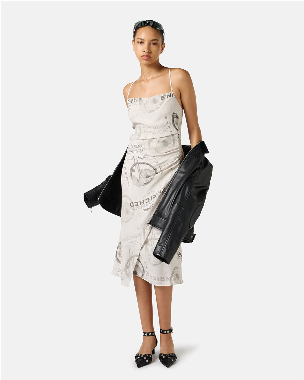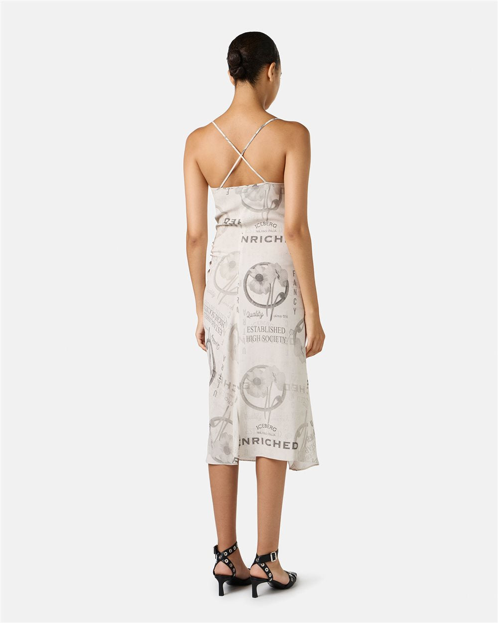 Vestido midi, confeccionado em georgette de dupla viscose certificado RCS, garantindo um produto ecossustentável e de alta qualidade. Este vestido oferece um design alegre e contemporâneo. A abertura lateral com fecho oculto acrescenta um detalhe prático e requintado. Perfeito para quem procura um estilo sofisticado sem abrir mão da sustentabilidade.