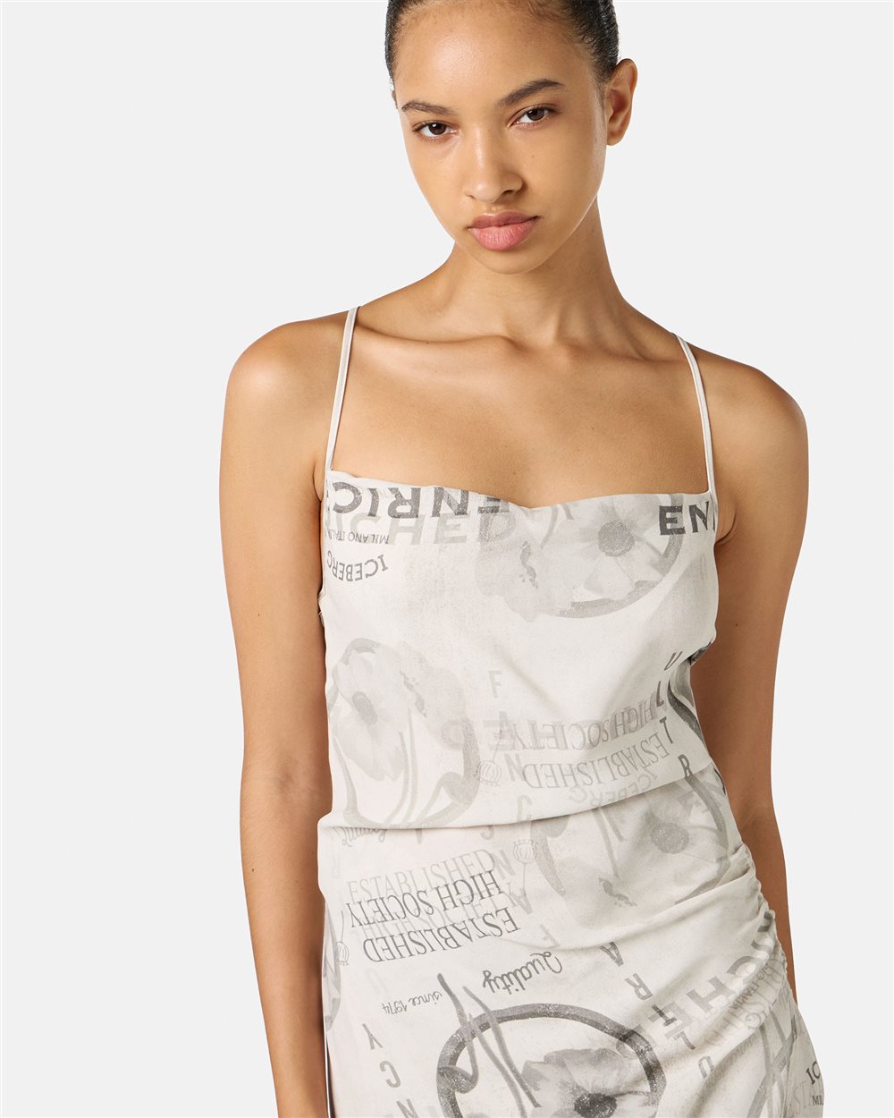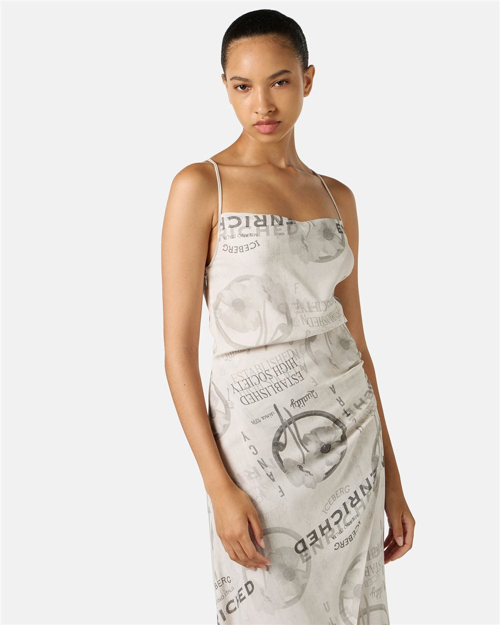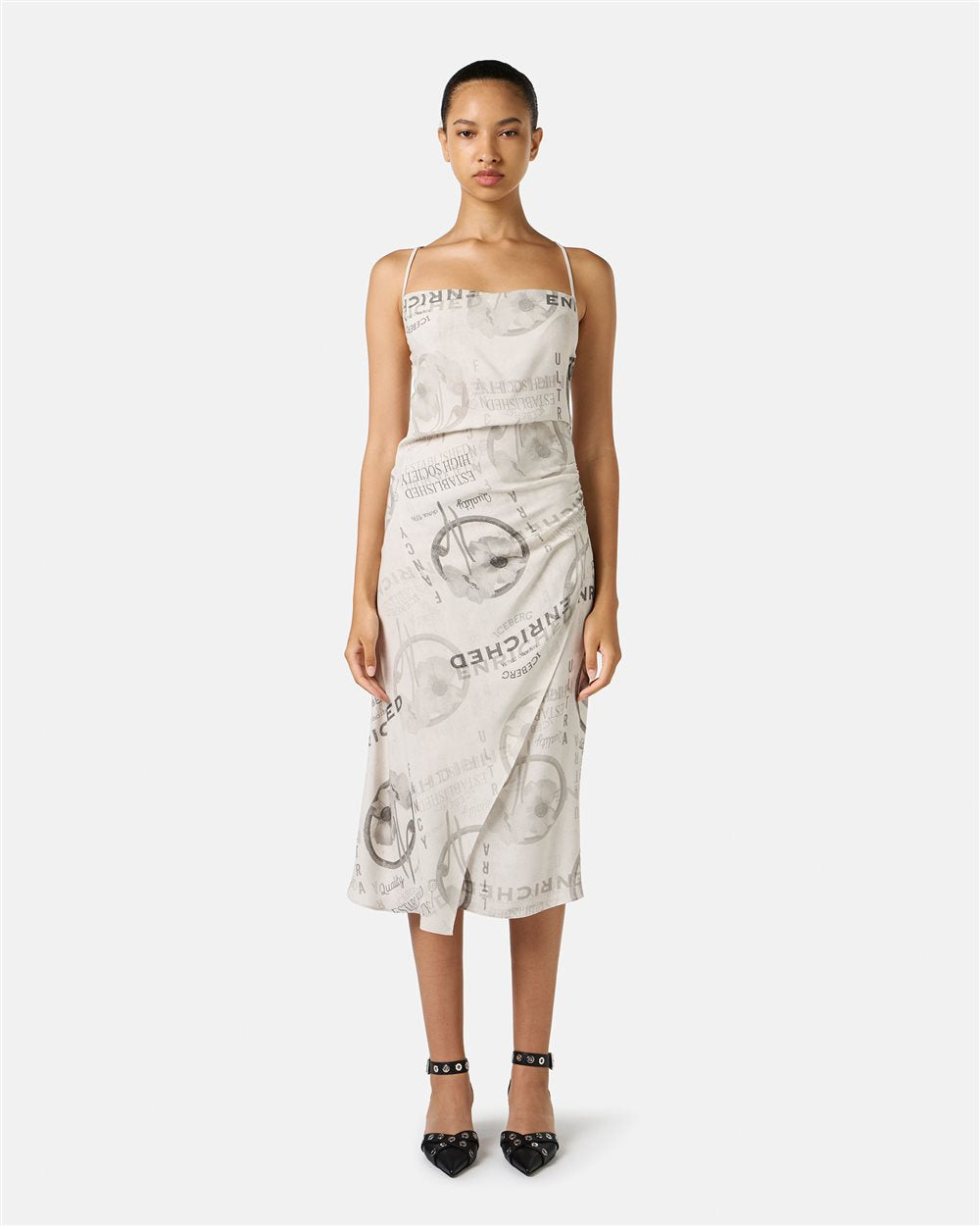 Vestido midi, confeccionado em georgette de dupla viscose certificado RCS, garantindo um produto ecossustentável e de alta qualidade. Este vestido oferece um design alegre e contemporâneo. A abertura lateral com fecho oculto acrescenta um detalhe prático e requintado. Perfeito para quem procura um estilo sofisticado sem abrir mão da sustentabilidade.