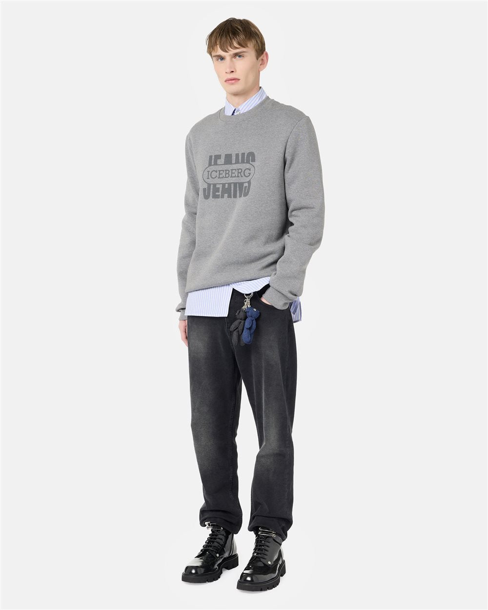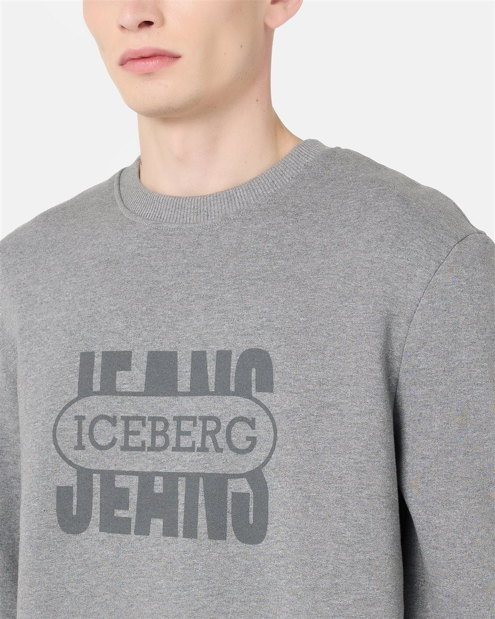 Suéter de gola redonda com corte regular, confecionado em fleece escovado de algodão cinza mesclado, com gola, punhos e barra canelados para máximo conforto. A estampa vintage com logo estampado na parte central frontal adiciona um toque distinto e autêntico à peça Iceberg.
