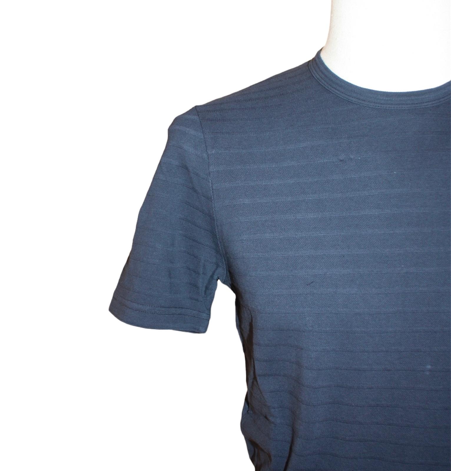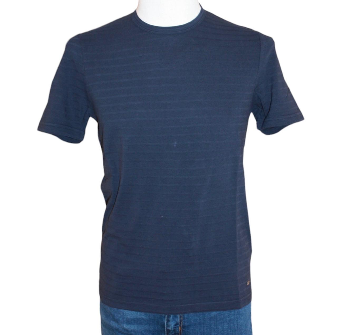 T-shirt em algodão texturado, cor sólida, logótipo, gola redonda, manga curta.